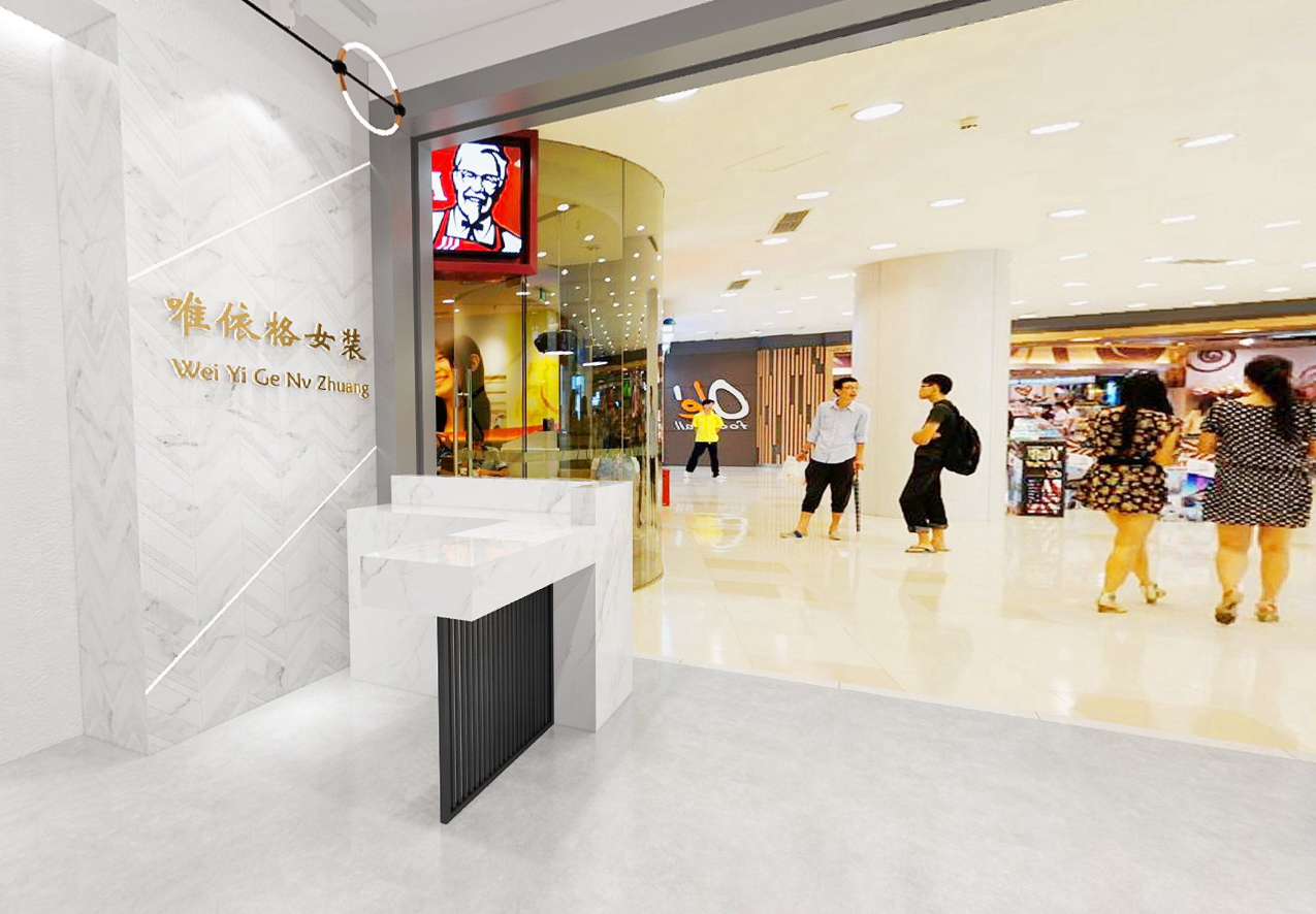 店铺整体处理为浅色调,干净雅致,配以木色的温馨,包括各类道具也采用木色和白色的结合,营造柔和温暖的气氛。