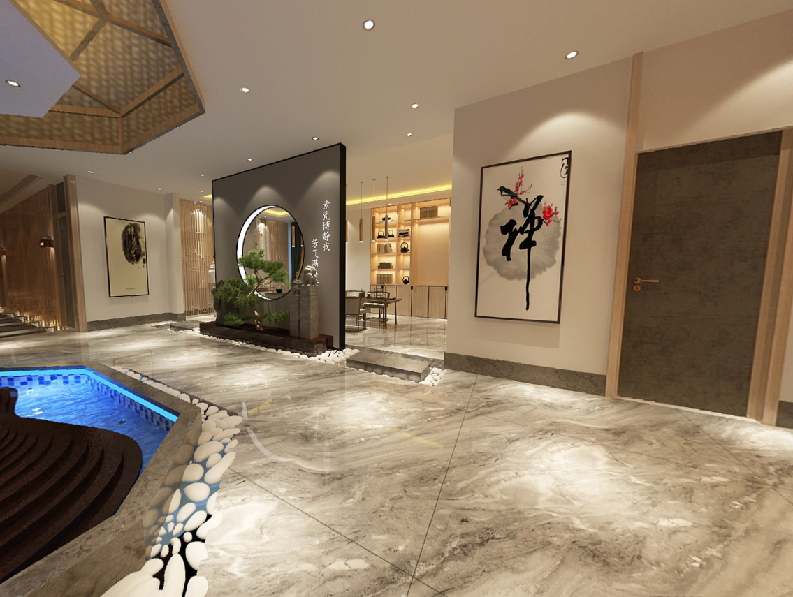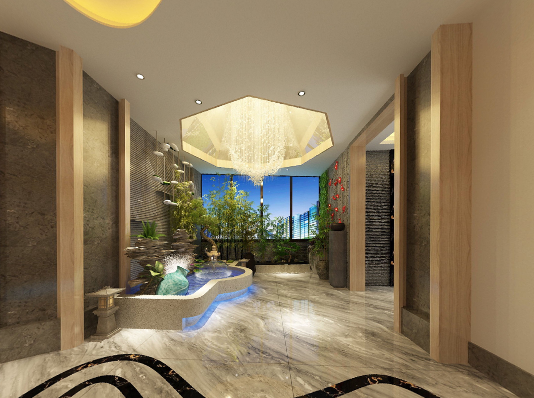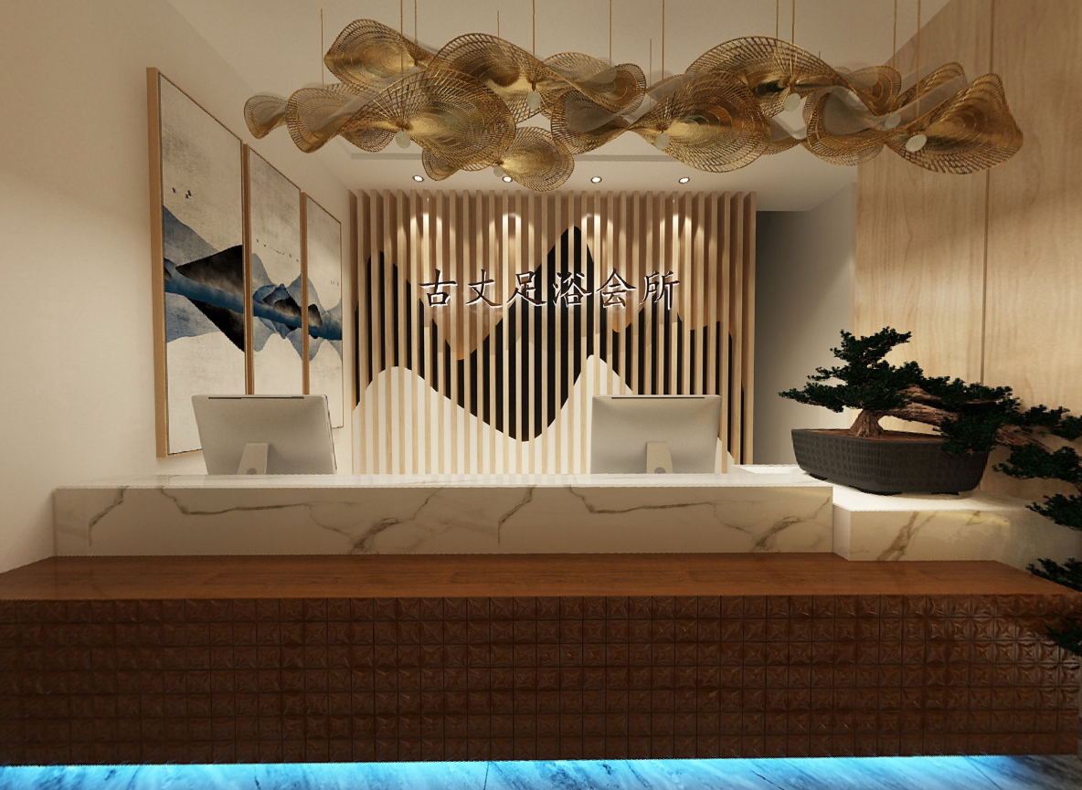 足浴店设计顶部设计类型一:采光顶,在足浴店水是最多的,所以为了健康与美观,足浴店内通风采光是很重要的,一般会在顶部的中间部位设置各种不同形状的凹槽,一是为了达到艺术效果,而是在凹槽中可以设置不同类型的光源,借助灯光完善顶部的艺术效果。