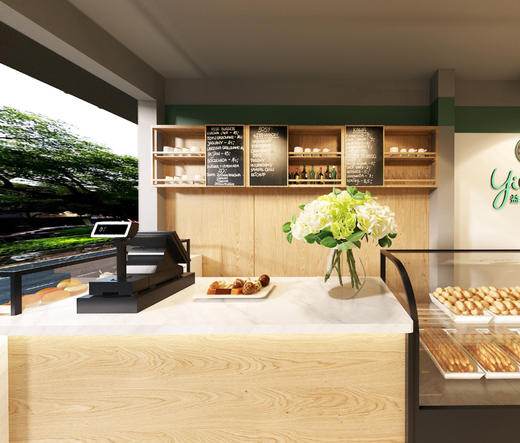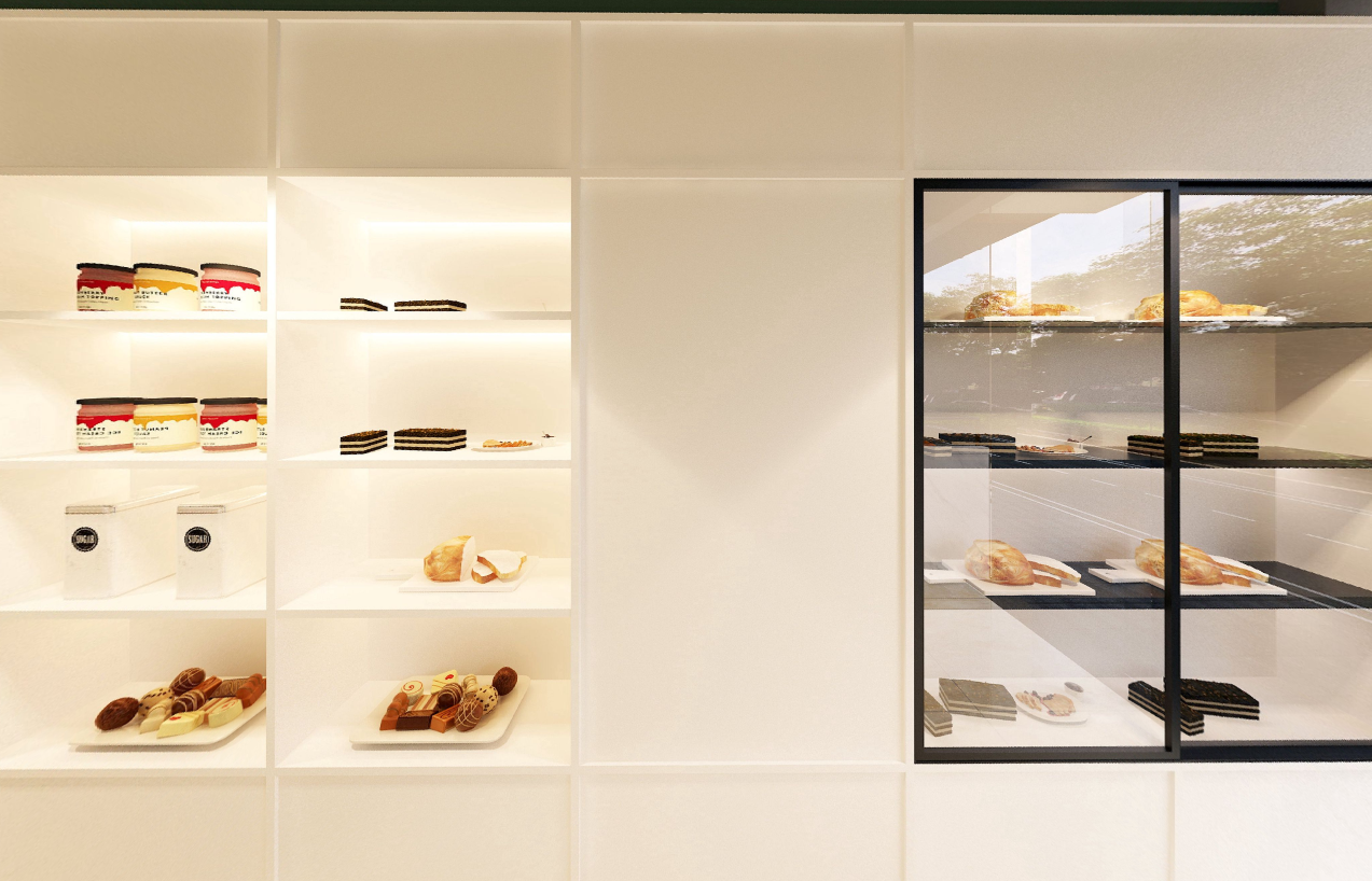 餐厅与红墙的对话于是成为设计的起点。原建筑玻璃幕墙向室内后退一个通道宽度,为人与临街店铺推门即进的关系增加迂回机会。由金属网与玻璃幕墙组成双层立面,柔化了室内与佛寺边界。