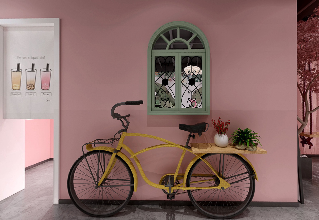 蛋糕椭圆形的外貌在中央陈列架中重复展现,如同展示在玻璃展柜的珠宝。它的位置周围有提供客人走动的空间,来客可以选择品尝诱人的甜点,或欣赏精致的糖果及精美的托盘。