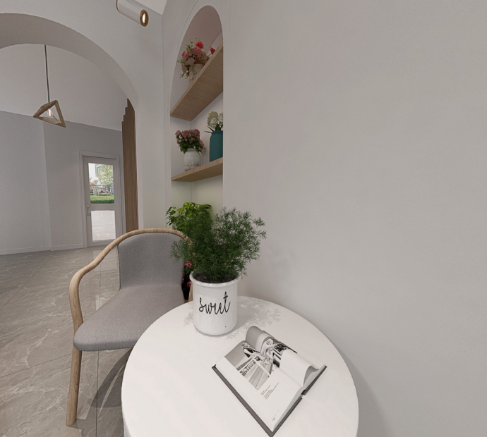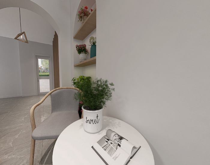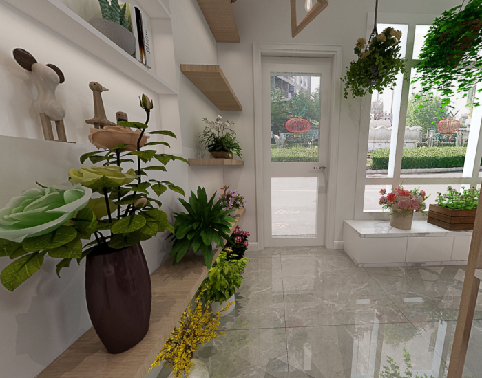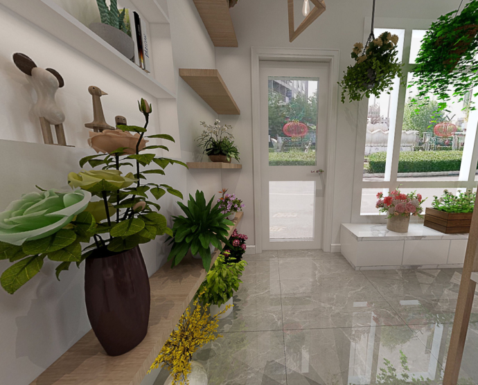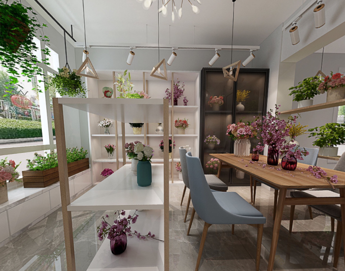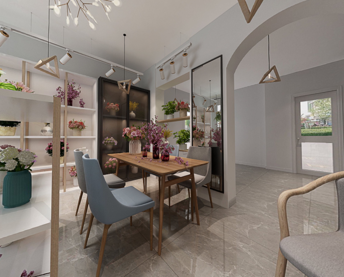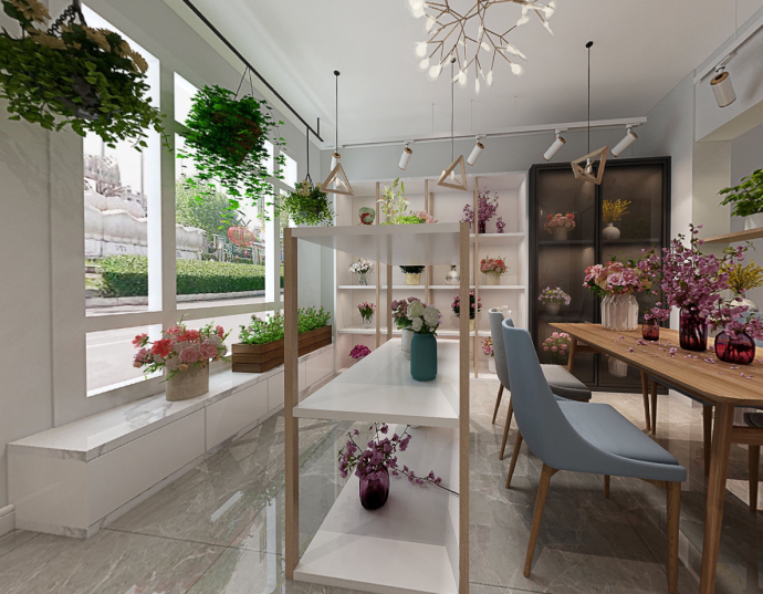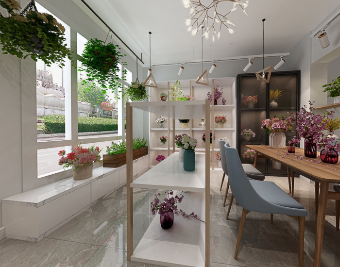 以"光"作为概念,落地窗不仅可以使室内获得充足的阳光,还使得路人可以一窥店内的风景,并很好的映衬了周围的环境,形成对比。