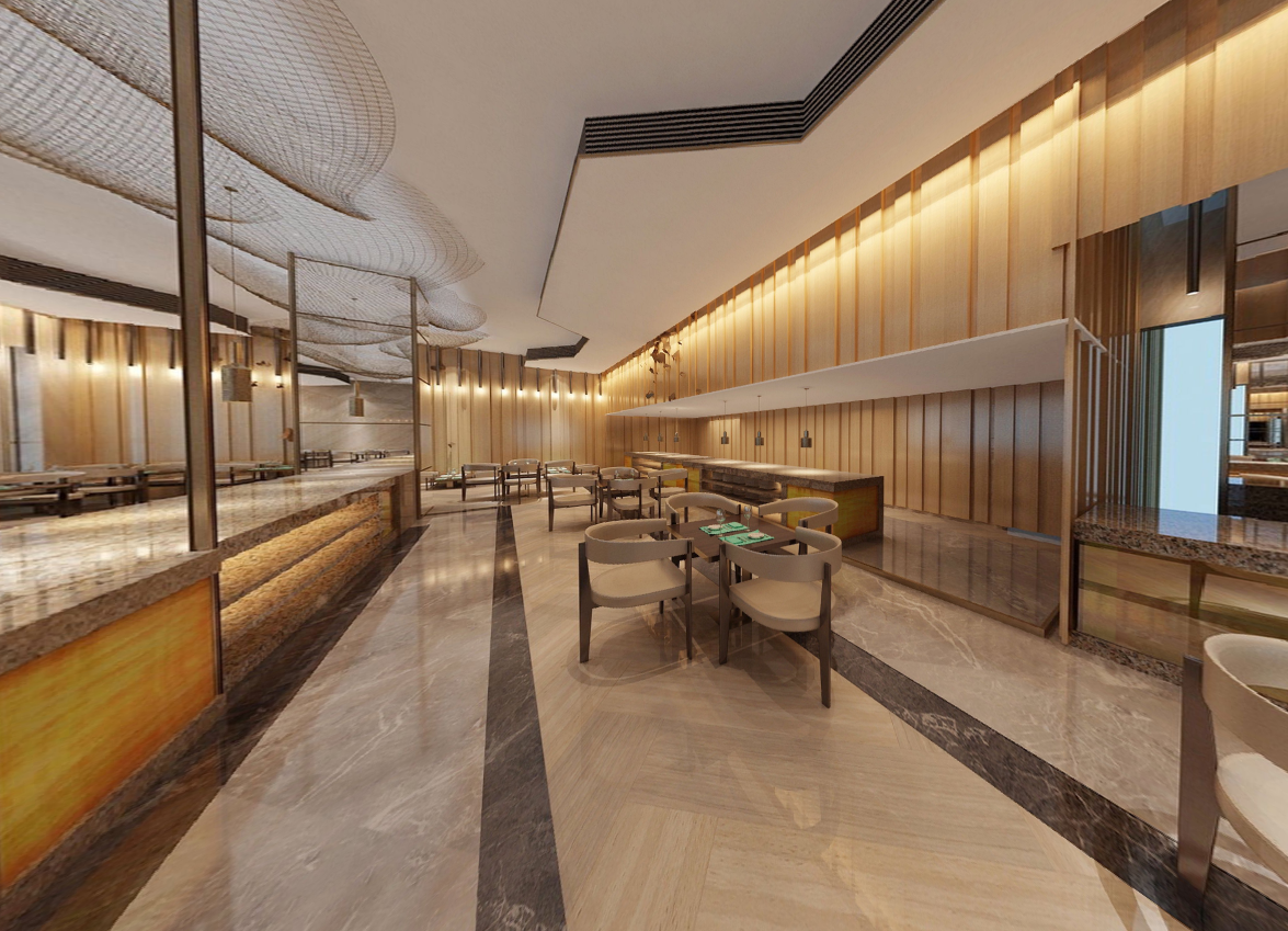 设计师于是为餐厅室内设定了更为灵活的欧式新古典格调。不是英式古典的厚重浓郁,也并非单纯法式的浪漫柔情,要清新、轻松,从旁边众多的深色餐厅里脱颖而出,让人能放松安坐。白色主调、灰绿色壁纸、柚木、灰白地砖,整体简洁明朗,欧式新古典风格的好处还在于有极强的包容性,无论古典家具,还是现代家具都能与之相得益彰,令空间未来有更多变化可能,也贴合餐厅主打的新派低温创意西餐。