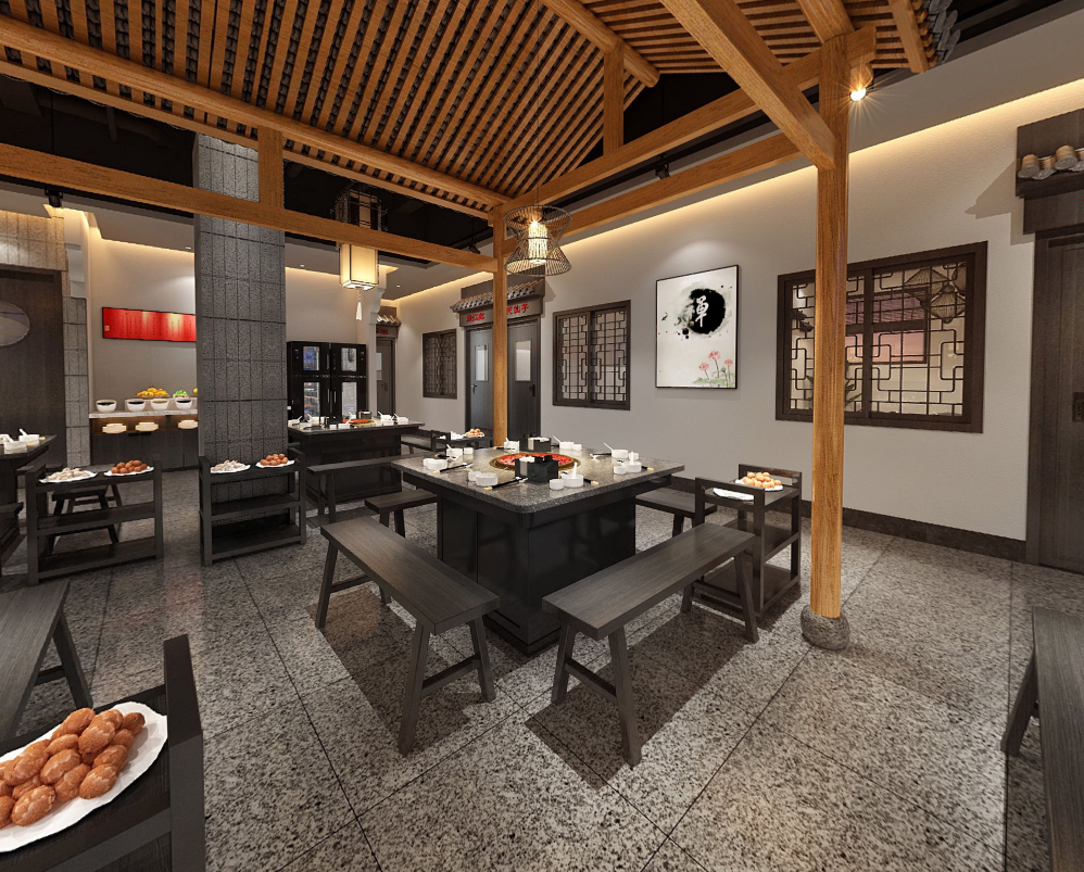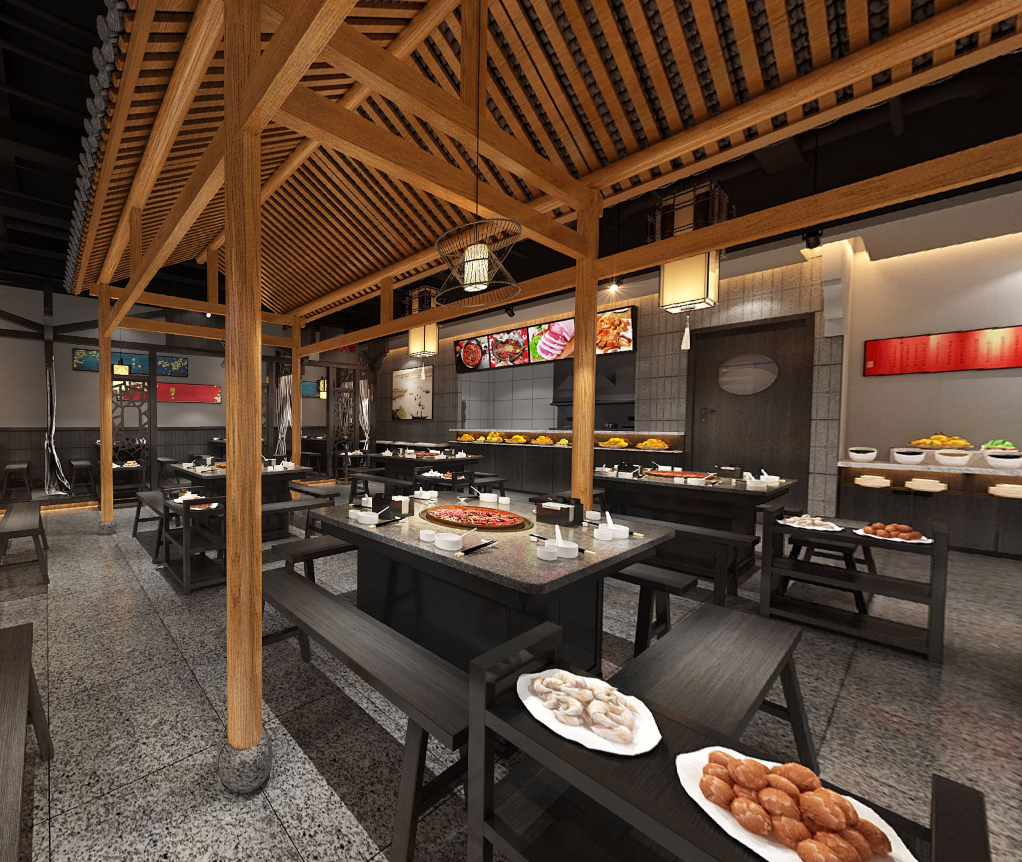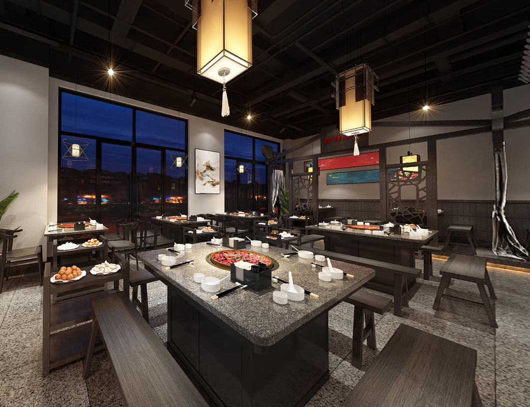 设计置换了橱窗展示手法来展示餐厅的特有文化。大厅空间置入悬浮屏风,围合出不同的就餐区域,每个就餐区域间隔而有透,让食客的视线在整个空间中游离。加上黑色不锈钢的装饰,令空间增添高贵典雅的气派