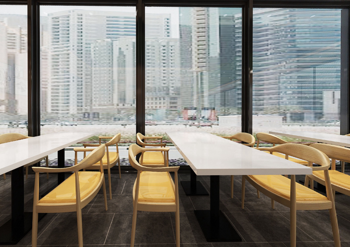 通过简化空间的装饰堆砌,保留材料的原生性设计手法,仅运用玻璃与钢板之间的拼接开阔视野空间,保留结构轮廓,缀以绿植,凝固与新生、冰冷与温馨、构成风格鲜明又奇妙融合的简练风格,试图用设计的手法摆脱刻板印象,冲破既定模式,让传统的餐饮品牌在时代背景下推陈出新。