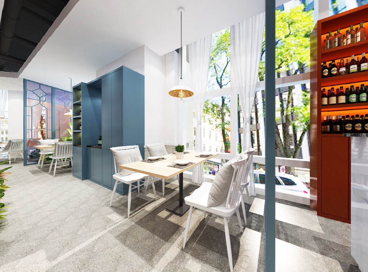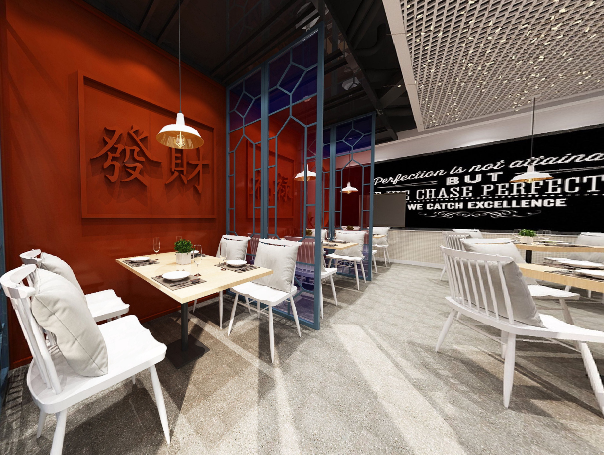 茶餐厅店内标准港式风格装修,复古的彩色玻璃隔断,维港海景等现场模拟。采用了装饰材料与设计构成结合,在室内整体设计中加以统一与提炼,既保持餐厅整体设计风格的完整性,又使各不同功能空间赋予变化。这样子的设计丰足了现代人审美需要,区域划分大气,通透。
