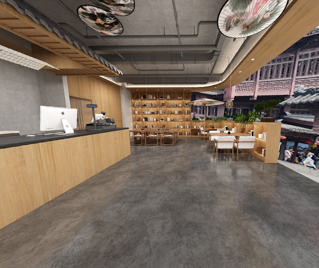 在整个流动的空间中,流动以不同的形态和缓急在不同的地方呈现着。中段因靠近吧台而收窄,在人稍多的时候显得有些湍急,在其两端则是两个放大的空间。