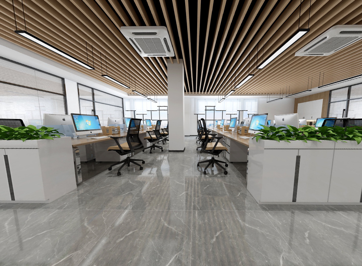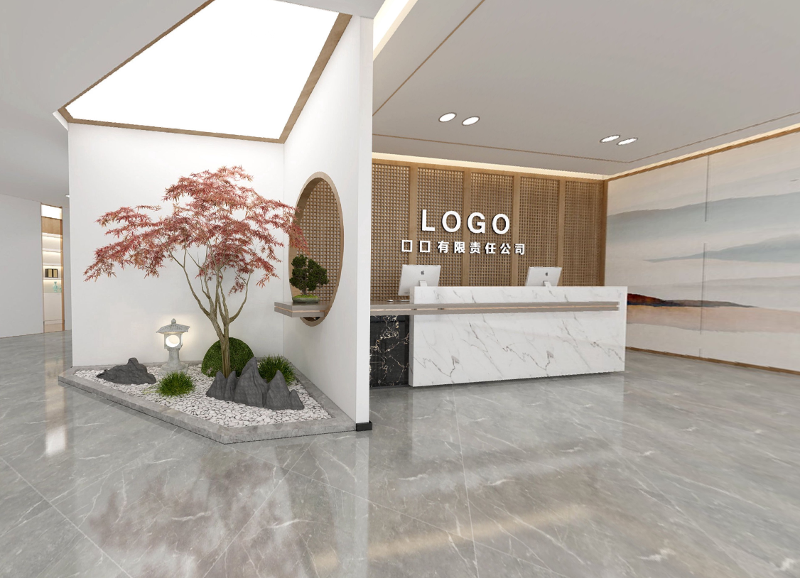 入口大厅体现一种灵活多变的时尚现代的气息,形成一种隔而不断的开放式共享空间。入口处虚实对比的隔断更能凸显企业既沉稳又包容的企业姿态。