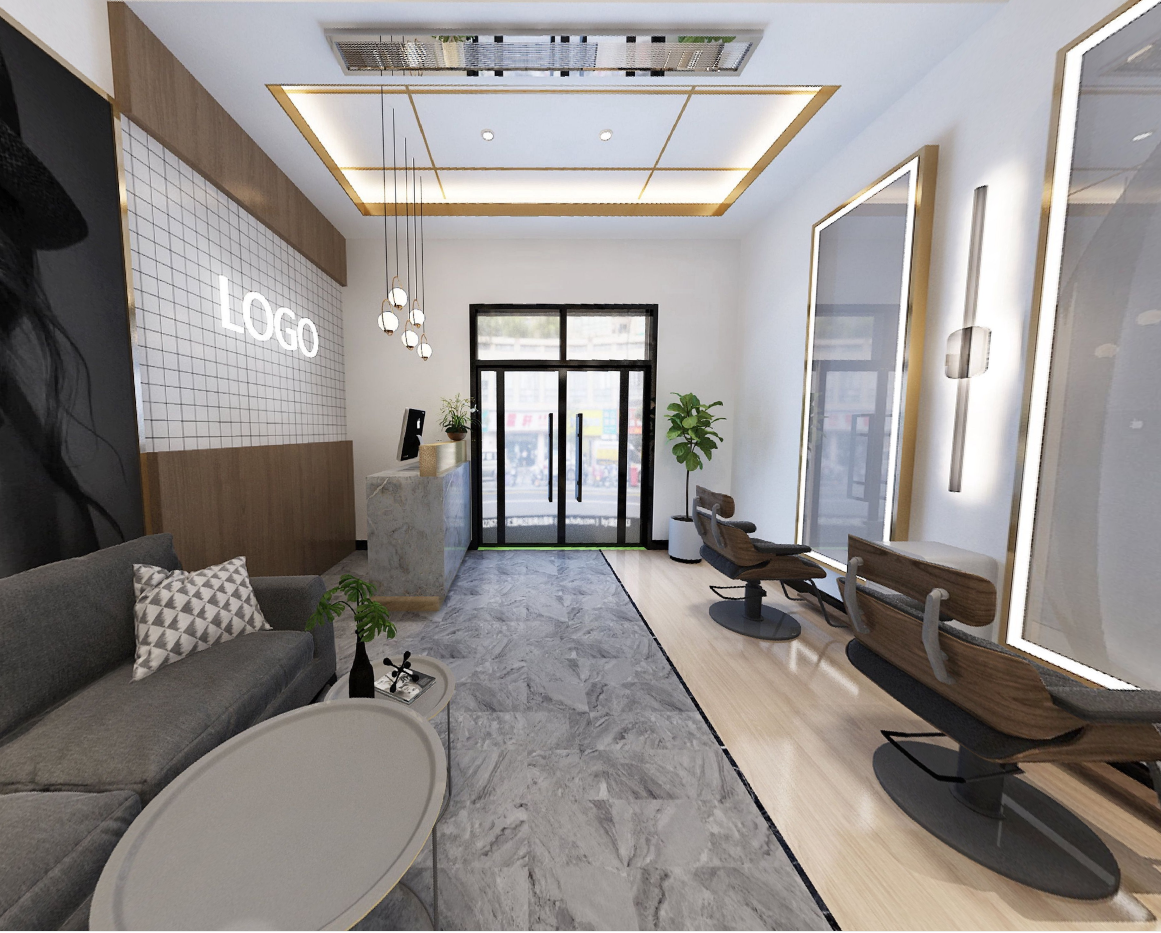 发廊的门面亮丽触目,为周围环境注入活力,顾客一踏进便即可见。入到发廊开放的门厅,迎讶着是气派细腻典雅的灰白色木地板,轻轻的分划出发廊范围。