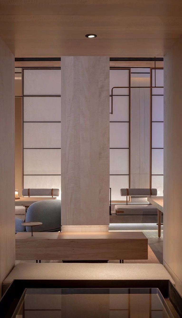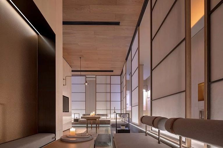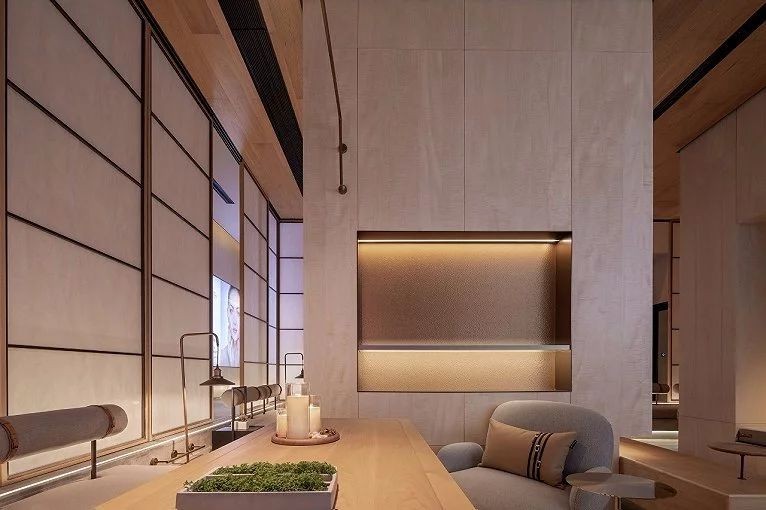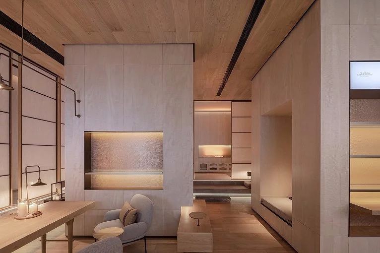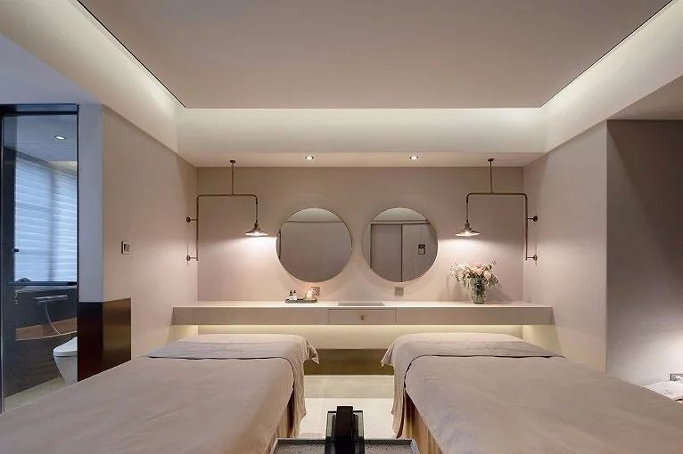本项目为品牌升级店,完全打破原有空间格局,项目团队从商业运营的角度出发,在空间布局上通过对空间的重组营造一个轻奢的SPA体验空间。