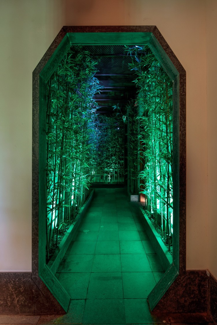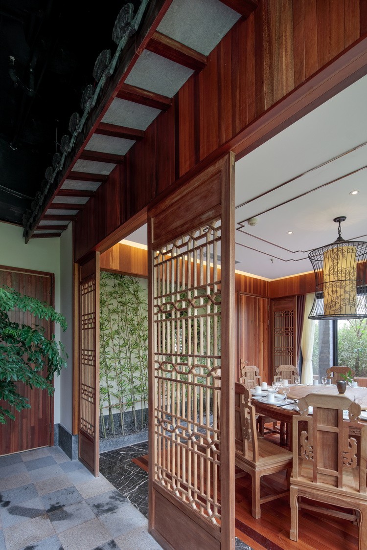 进入庄园前须经过一条茂密的竹林小径,庄园里有南北两个小合院组成,每个院内又个两个进厅,经过两个合院的来到户外的花园长廊,外可赏花喝茶,内可听琴下棋,就连洗手间也安排在一处精致的亭格内。庄内有西天取经还俗的八戒接过高员外的庄园打理,隐可见其藏于某处。